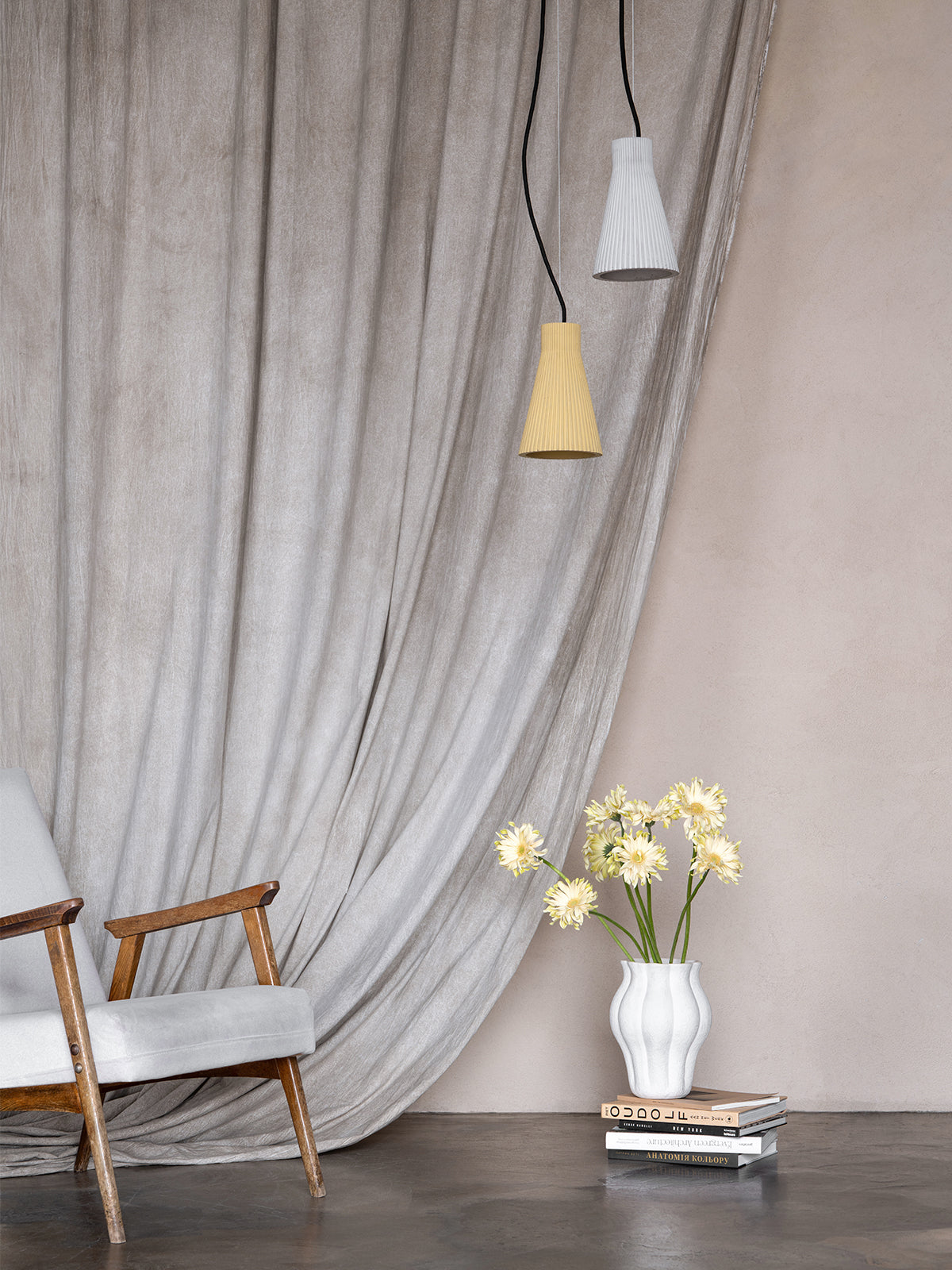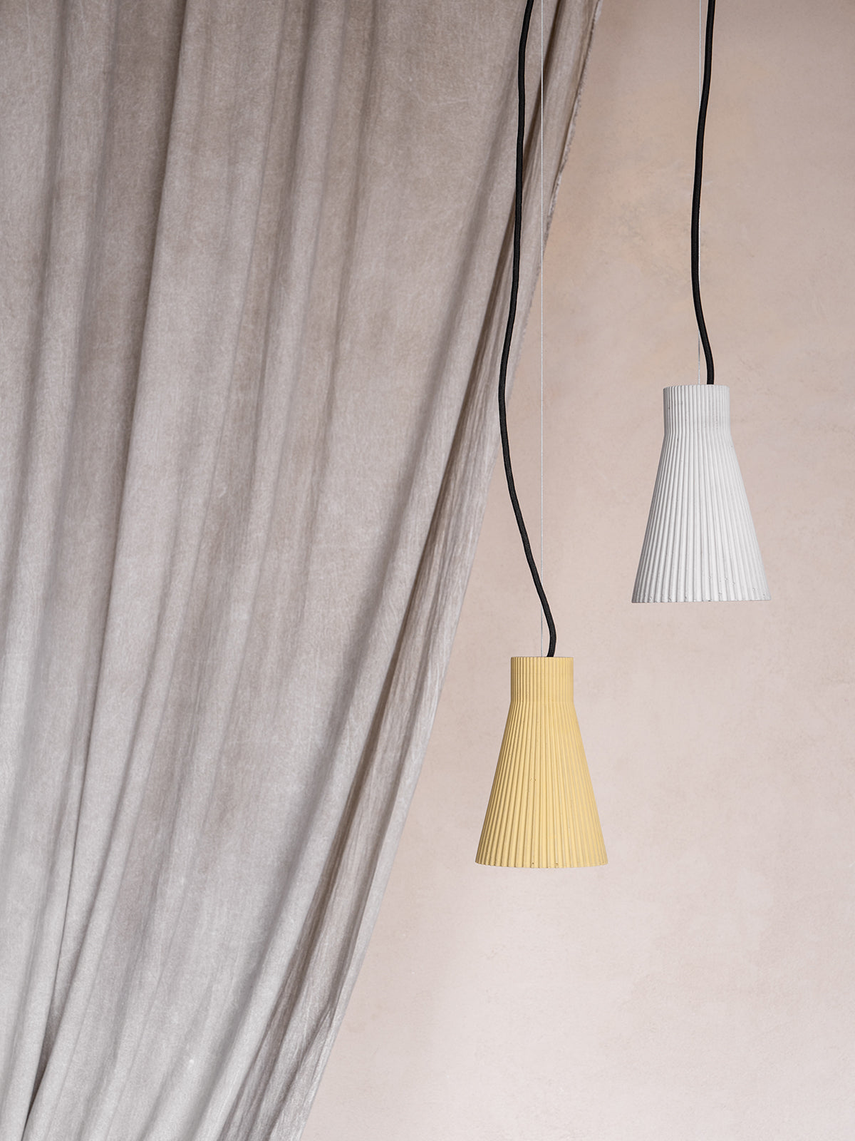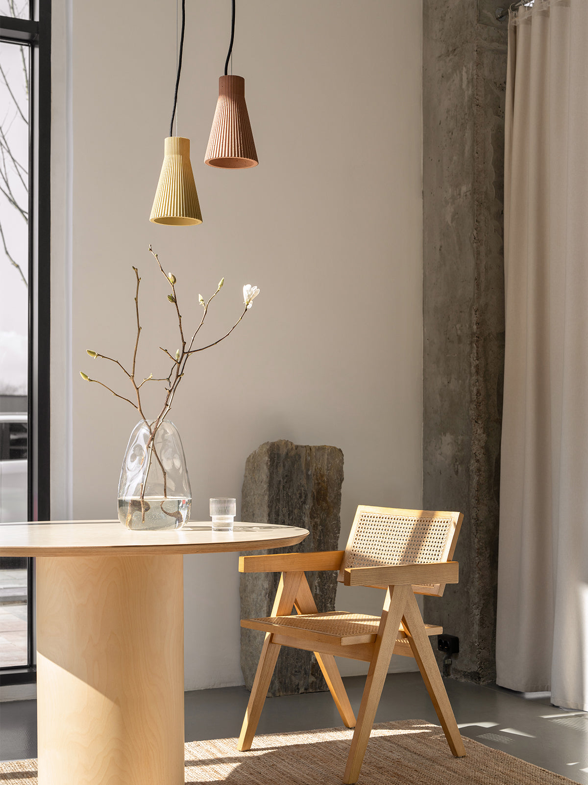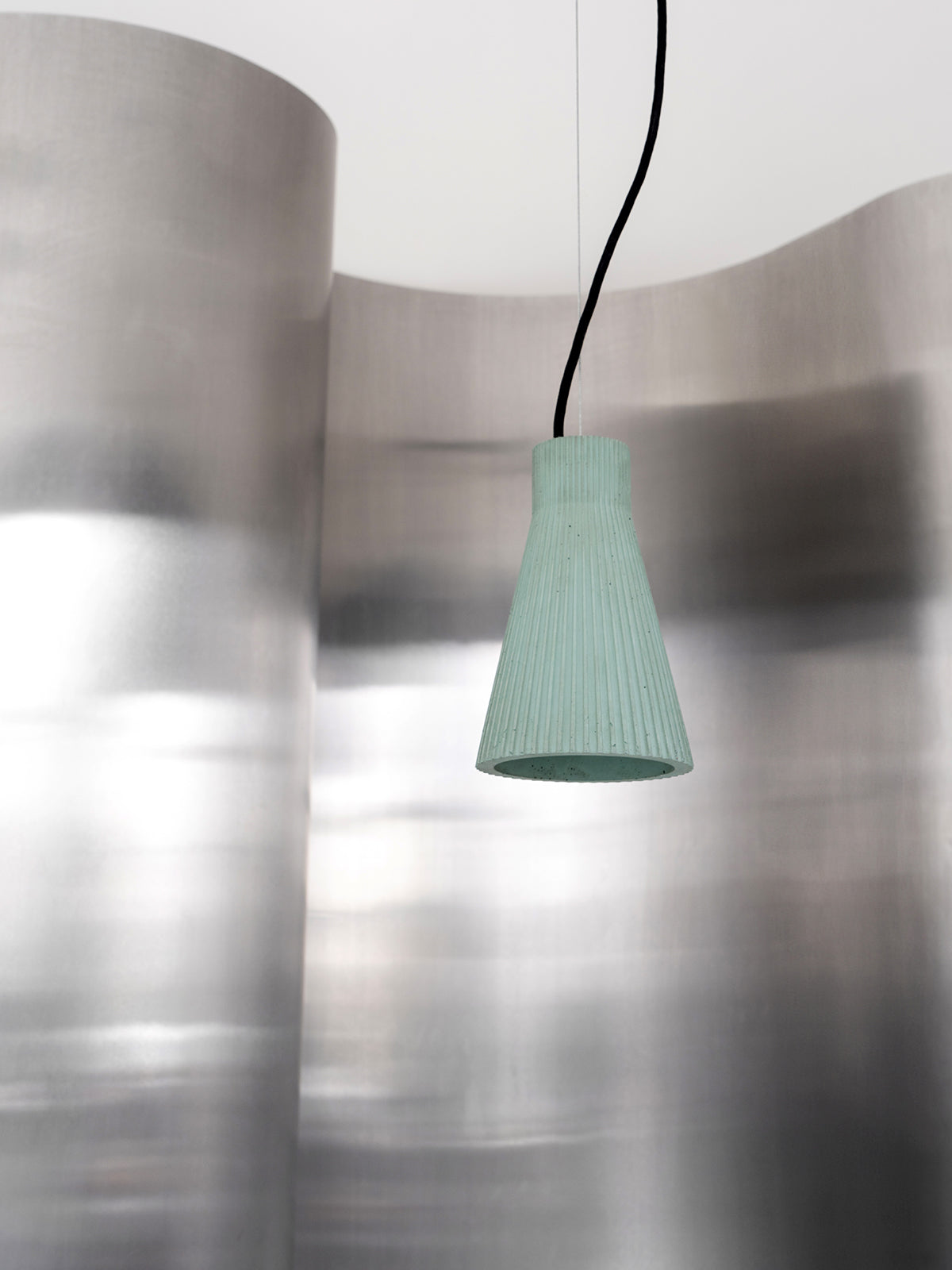 The GANTlights S1 pendant lamp introduces the new S-series aesthetic: a fluted concrete shade that plays with light and shadow, crafted in Berlin. Ideal above a dining table or in a cluster, the S1 blends elegance and texture.