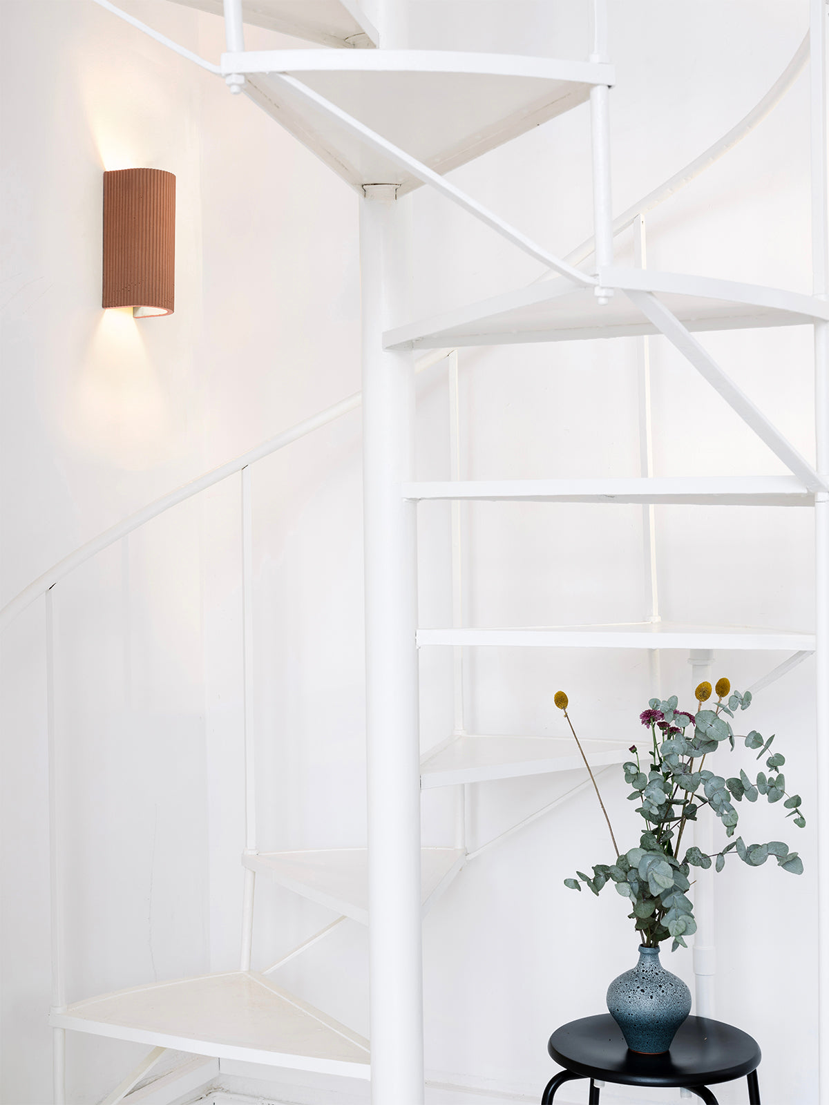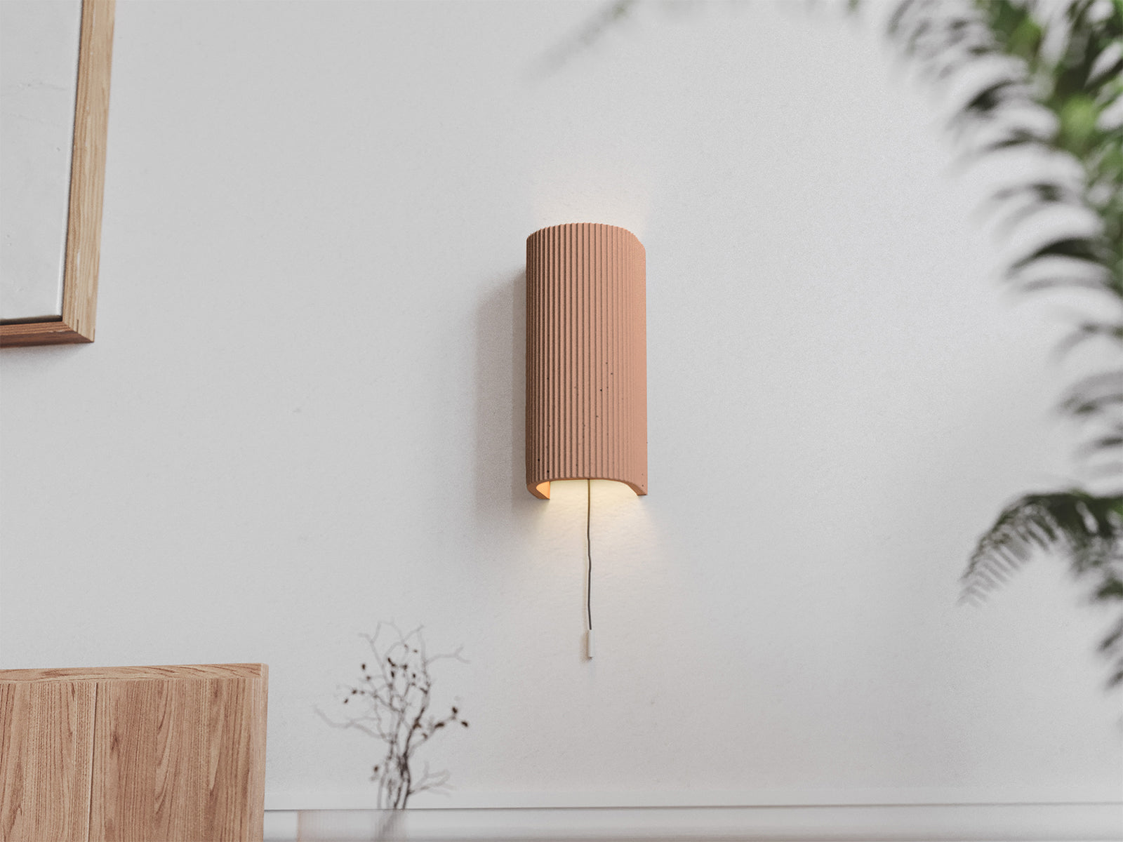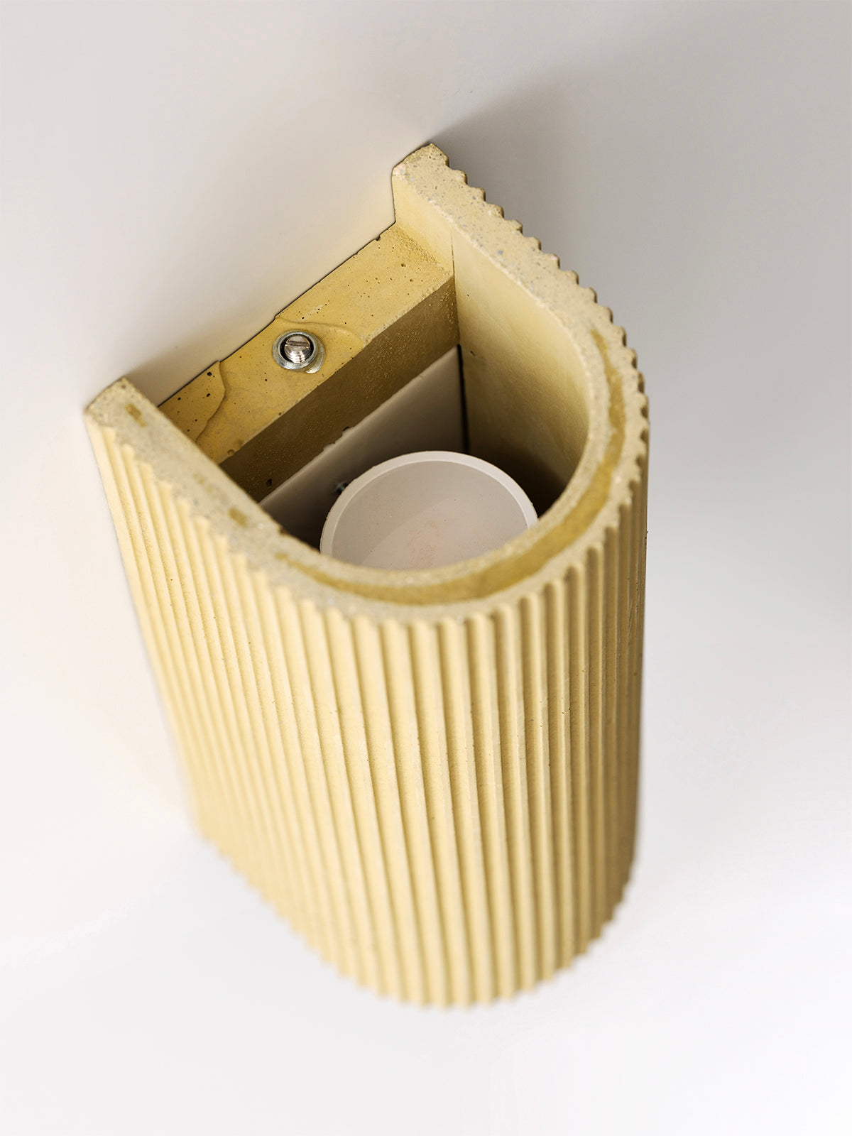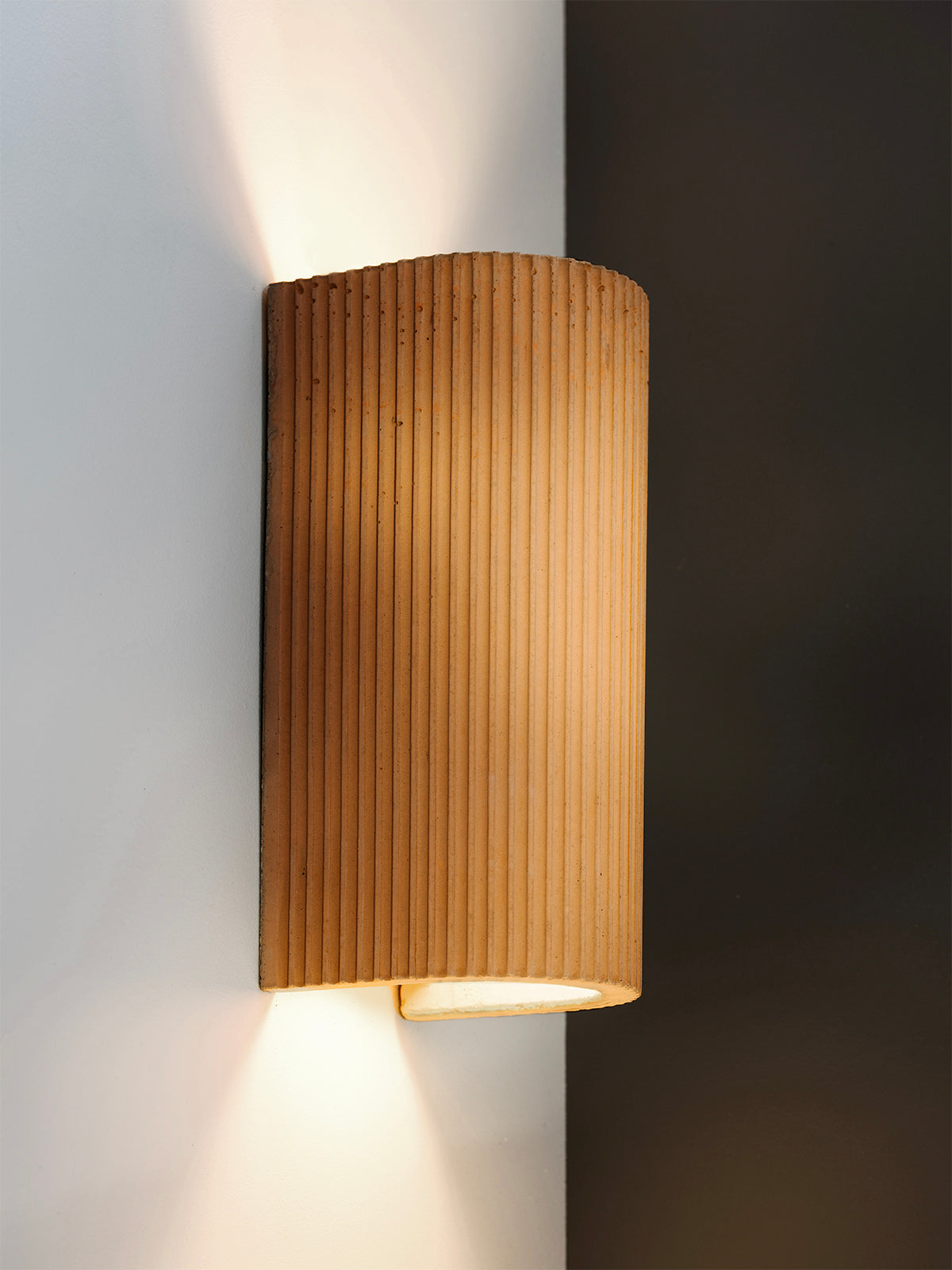The GANTlights S3 wall lamp brings the sculptural S-series aesthetic to wall surfaces: clean concrete, gentle fluted detailing and ambient light control. It’s ideal for sidewalls, staircases or accent zones.